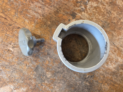 Schroefbusje klemflens en 1 dopje onder poot ontbreekt.